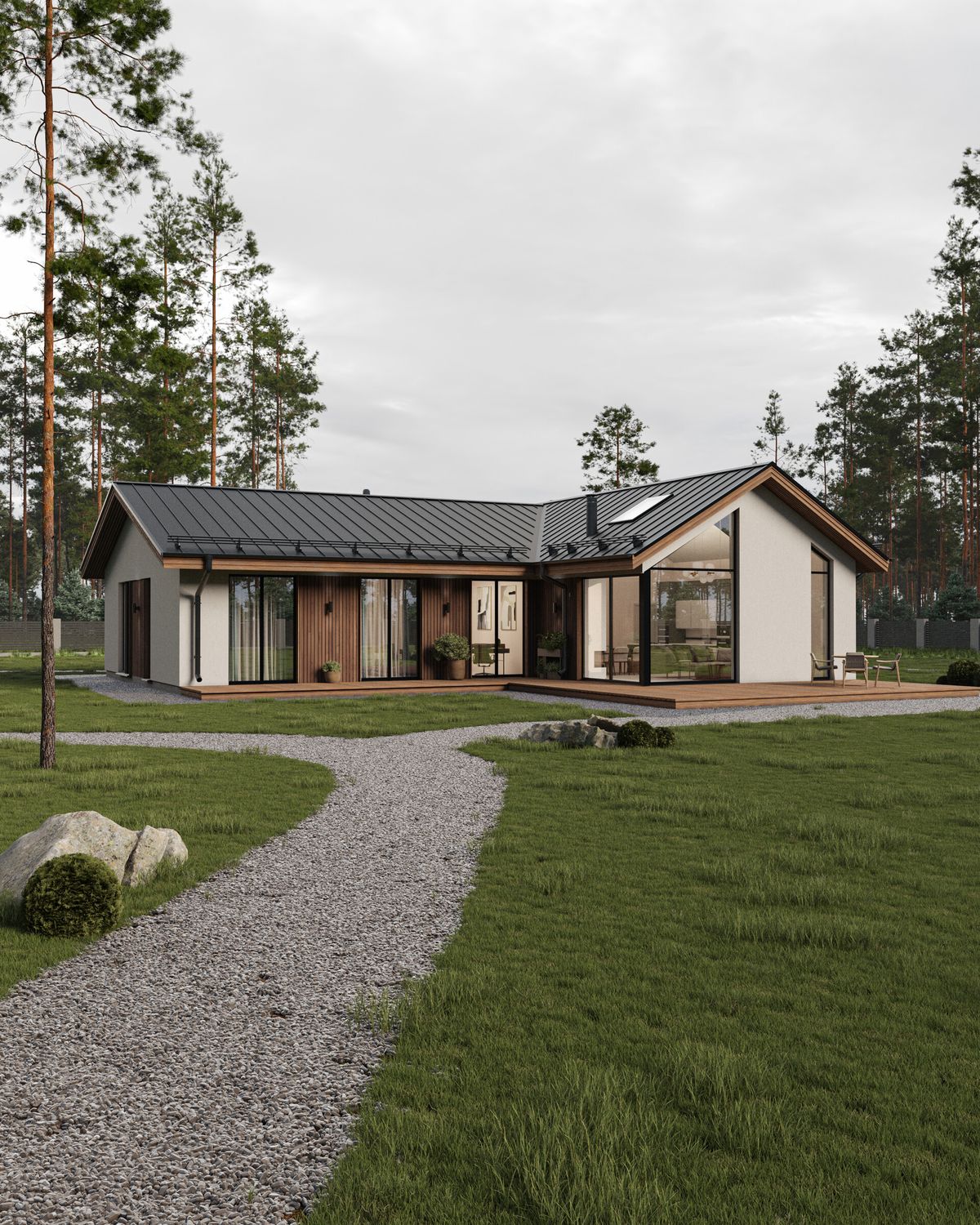 светлый сайдинг использовать для остальных частей фасада — это сделает здание визуально больше.