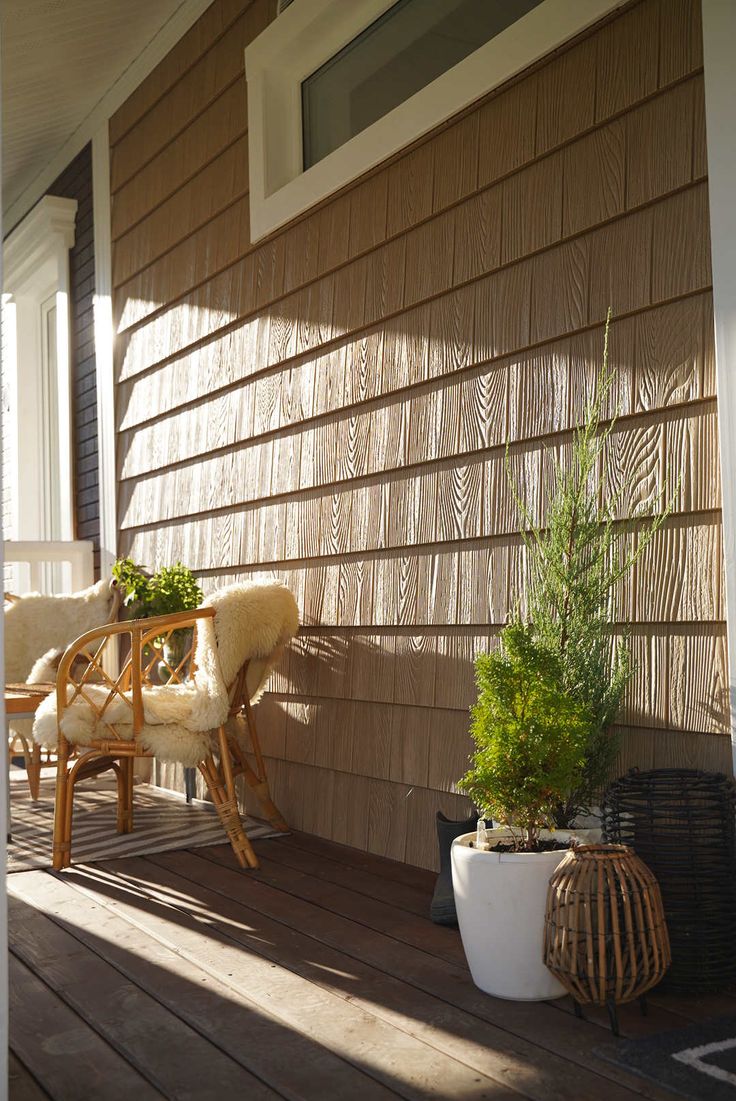 - Комбинируйте планки в серых и пастельных тонах из коллекций Loft с сайдингом цвета дерева из коллекции Chalet.